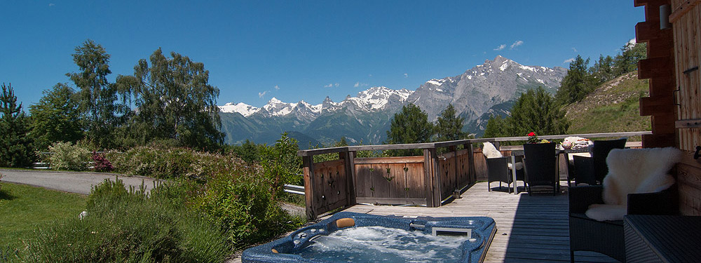 Stunning views over to the Bernese Alps and an outdoor Jacuzzi make this chalet the perfect hideaway.